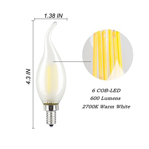 Led Candelabra Bulb,LANSONTECH 6W Frosted LED Filament Candle Light Bulb, Dimmable, 2700K Warm White , 60W Incandescent Replacement, 600 Lumens, E12 Candelabra Base, C35 Flame Shape Bent Tip, 5 Pack
