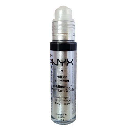 NYX - Roll on Eye Shimmer / Platinum-Ice White w Silver Glitter for Face, Eyes & Body Brighten your face and body with Roll on Shimmer. Add lustre to your look with our brilliant shades that roll easily onto eyes, face and body. You control the intensity of the pigment yourself. Easily blend the shimmer powder using a brush or fingers, the pop it into your purse for on-the-go sparkle.Feature