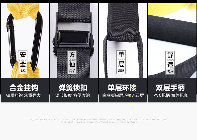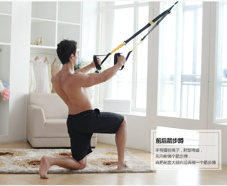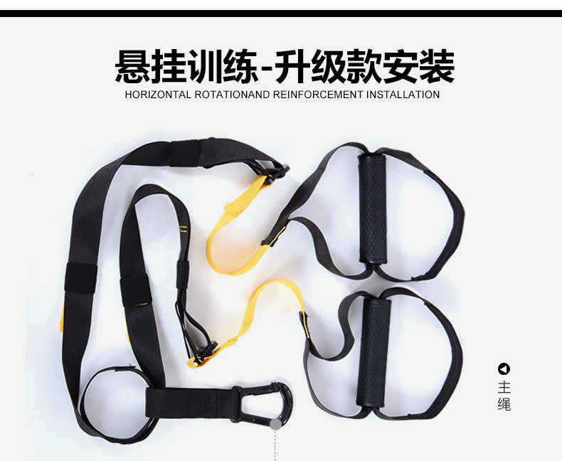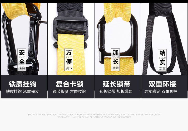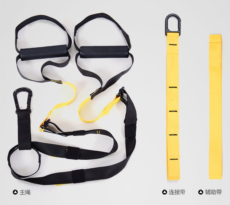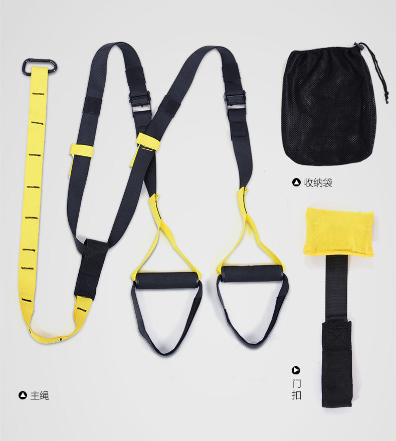 Upgraded (safety load 300kg) Ropes (adjust the length: 230-320cm) Connection with (long 95cm) Door buckle (length 40cm) Auxiliary belt (length 95cm) A pouch Net weight (1150 g)