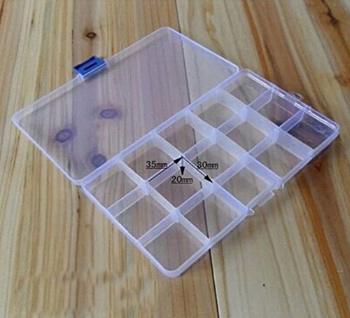 (Fishcm)/Fishing/Accessories/DIRECT FROM USA/Fishcm 15 Slots Fishing Lure Box, Adjustable Plastic Hook Tackle Box Storage Case Organizer