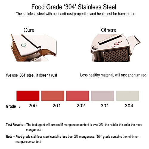 LIFETIME GUARANTEE: LOVE IT OR YOUR MONEY BACK! We are so confident that you will love our Press & Peeler Set that we are offering all customers a lifetime guarantee. If at any point you decide you are not completely satisfied with your set, just drop us an email and we will refund 100% of the money. You wont get this kind of risk free service with big brands like Rosle, Pampered Chef and Kuhn Rikon.