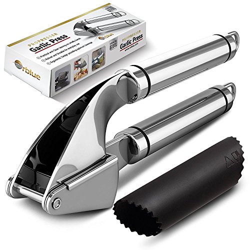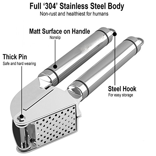 SOLID STAINLESS STEEL. Since the garlic press is made from solid, high quality stainless steel, and the peeler tube from tough FDA approved silicone, these cooking gadgets will last as long as you need them.