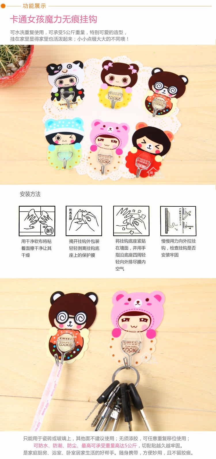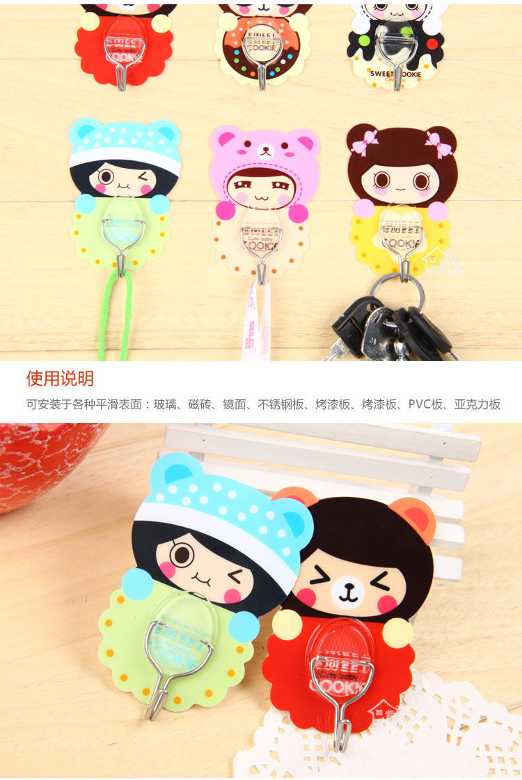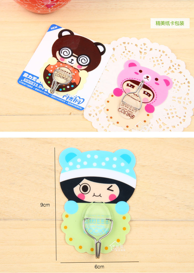 Korean version of the cartoon cute girl magic trace hook reusable sticky hook