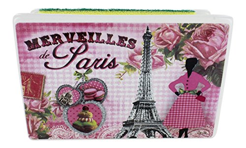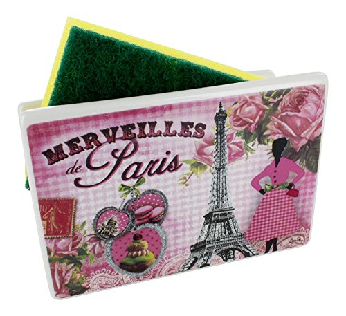 [Product Information]- Ceramic Sponge holder with a French design "Merveilles de Paris France", with the eiffel tower