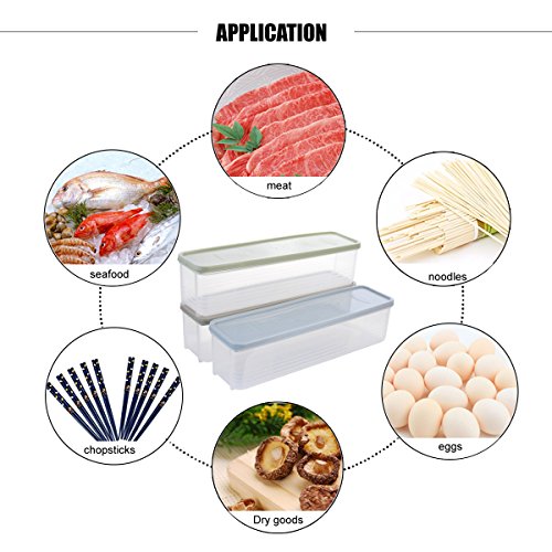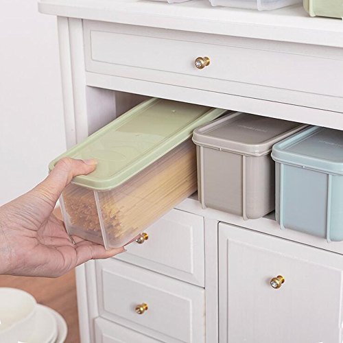 - The plastic box is good for storing foods such as noodles,meat,eggs,fruits,beans,cookies, flour, spices and other kitchen staples