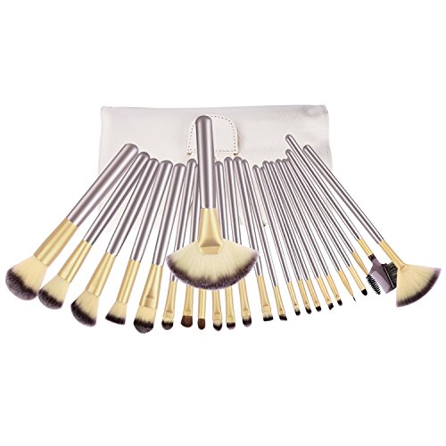 -. Title : HeShu 24PCs Professional Makeup Brushes Synthetic Kakubi Cosmetic Makeup Brush Set with Leather Traverl Pouch Bag