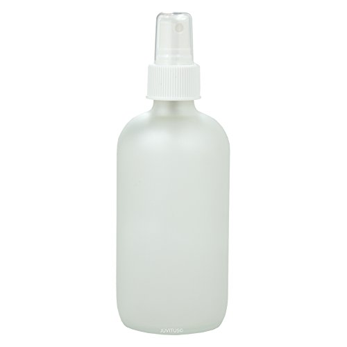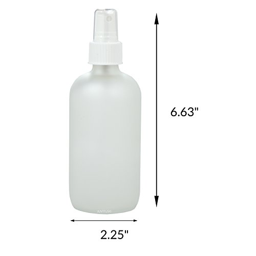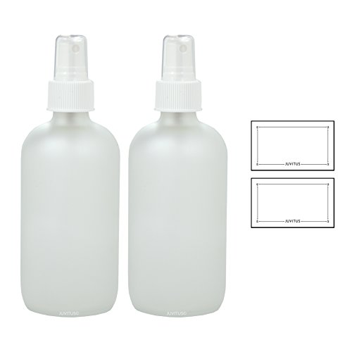 8 oz Frosted Clear Glass Boston Round Bottle with White Fine Mist Sprayer (2 Pack) + Labels