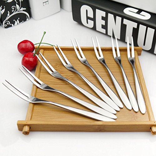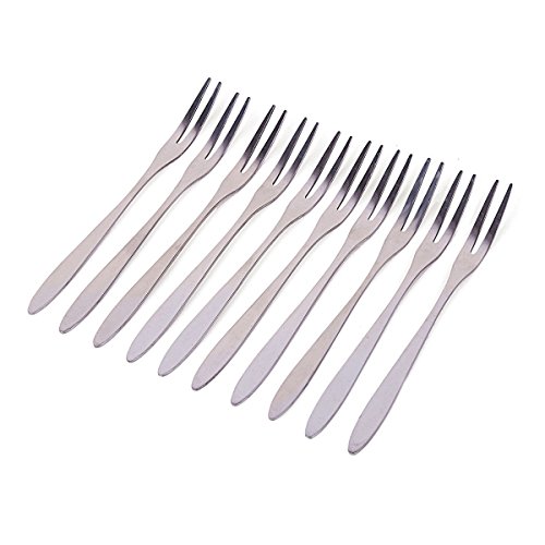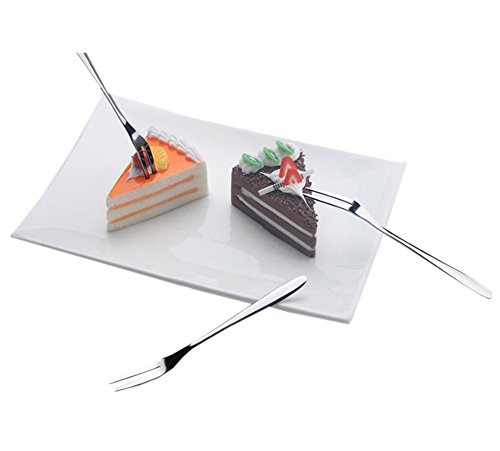 HornTide 12-Piece Cake Forks Set 2 Tines Appetizer Fork for Dessert Fruit Salad Stainless Steel Mirror Polishing 5.3-Inch 13.5cm