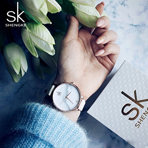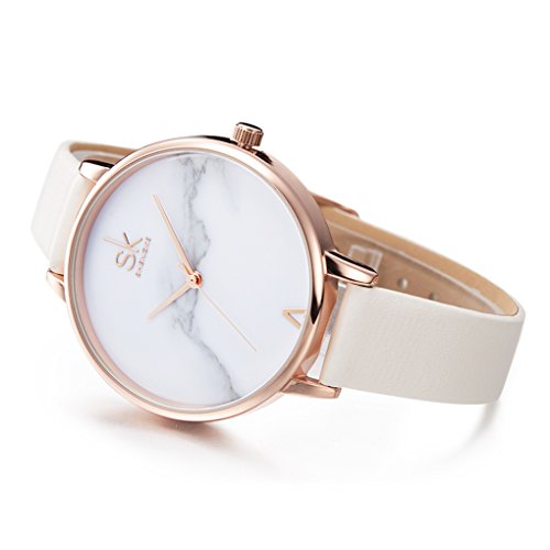 Brand, Seller, or Collection Name:RUIWATCHWORLD Part Number:SK0039 Item Shape:Round Display Type:Analog Clasp:Buckle Case diameter:1.50 inches Case Thickness:0.31 inches Band Material:leather Band length:Women's Standard Band width:0.47 inches Band Color:White Dial color:White Bezel material:Stainless steel Special features:simple and elegant design,fashion and casual design,marble dial with leather band Item weight:1.12 Ounces Movement:Japanese quartz