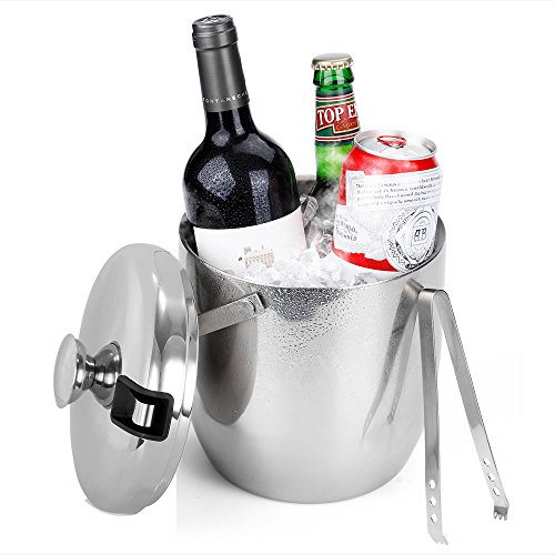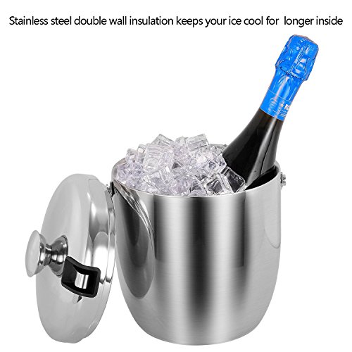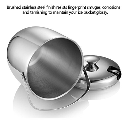 -. Feature : 【Resist Fingerprints】- This double walled insulated ice bucket is made of food-grade 304 stainless steel. Brushed stainless steel polished finish resists fingerprint smudges, corrosions and tarnishing to maintain your ice bucket shiny. Dishwasher Safe. / 【Chilled for Longer】- Double-walled construction ensures that ice cubes stay well and truly chilled, prevents condensation on the outside of this ice bucket. Moreover, stainless steel ice bucket will not break into pieces like glass ice bucket! / 【Portable Swinging Handle】- Sturdy and swinging stainless steel handle for easy carrying and moving. / 【Ice Bucket with Stainless Steel Tongs】- Stainless steel ice tongs with sharp teeth easily grab ice cubes, the tongs tuck perfectly into the lid to save space and won't lose it. / 【Indoor & Outdoor Use】- 3L capacity is perfect for Indoor Parties or Outdoor Picnics. This high-quality stainless steel ice bucket can be used for the storage of Ice, Wine, Champagne, Whiskey, Beer, Frozen Drinks and so on, it's also suitable as a gift to your family or friends.