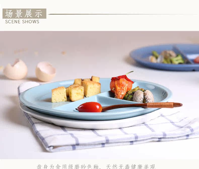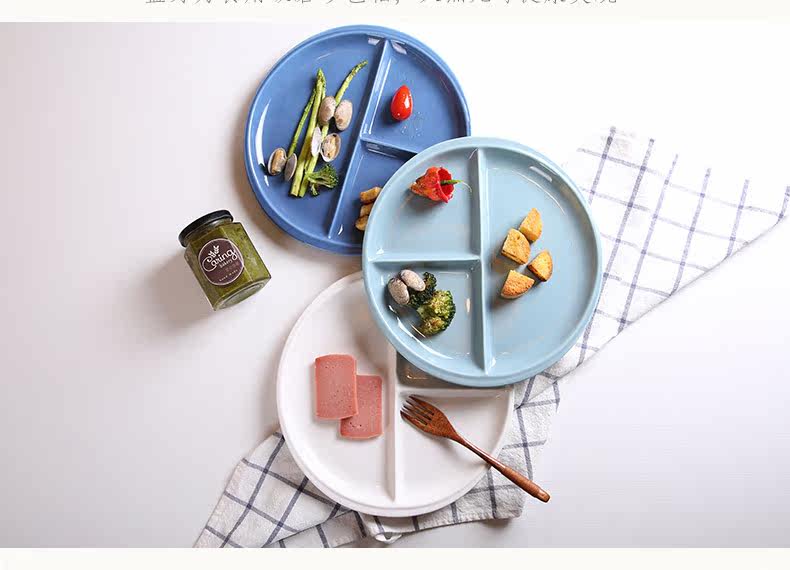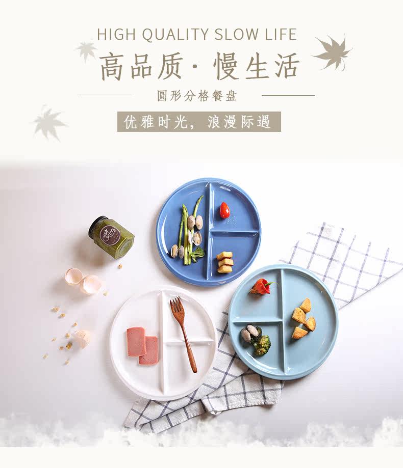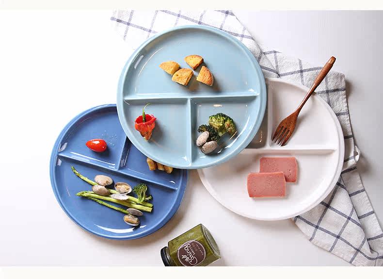 创意陶瓷分格盘可爱简约日式餐盘蛋糕点心水果盘学生快餐盘三格盘