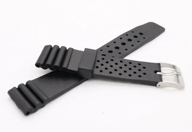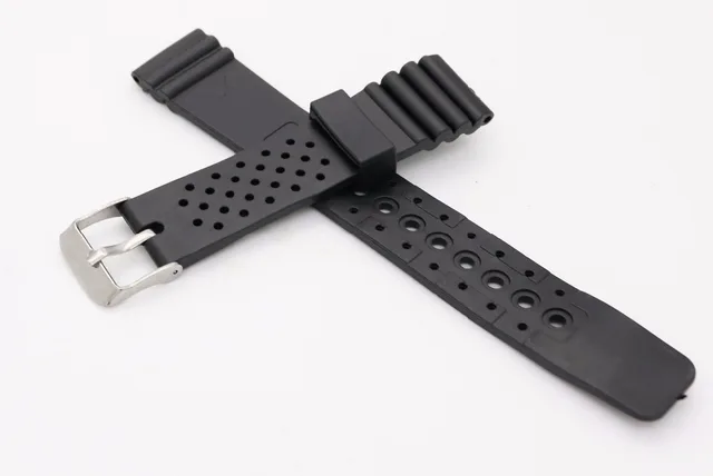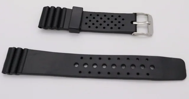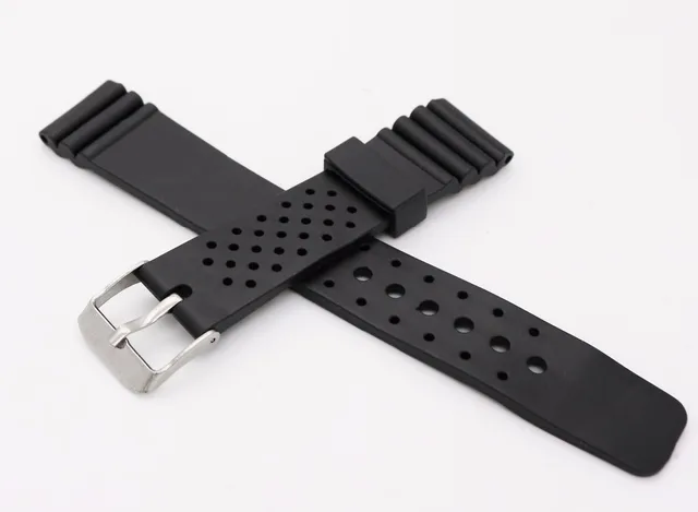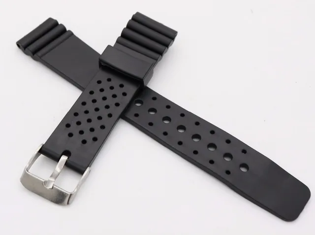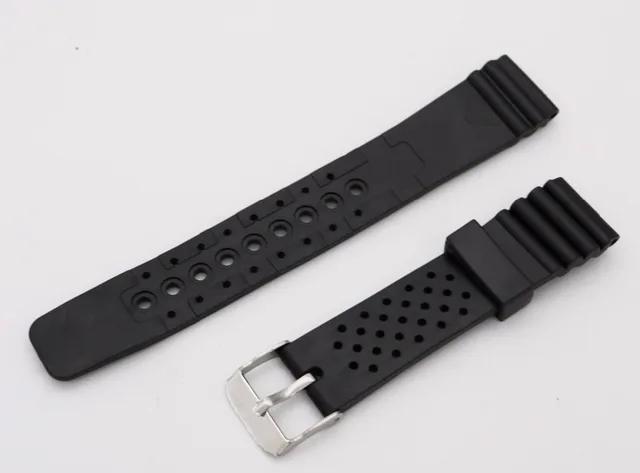 | [해외]20 미리메터 (18 미리메터 버클) 남자 레이디 블랙 실리콘 고무 스트레이트 엔드 손목 시계 밴드 스트랩 벨트 실버 광택 핀 봄 바 버클 |