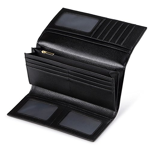 -. Feature : 100% Premium Genuine Leather. Made with the Finest Grade Soft, Smooth Pebbled Textured Leather, feels luxury and comfortable. The leather is nice and craftsmanship is also done very well. This womens leather wallet is very stylish and durable. Wallet Dimension: 7.5" (L) x 3.75" (W) x 1" (H) / Safety, P.R.Ivacy and Security. Our ladies wallets features a unique military grade shielding technology & proP.R.Ietary blocking material. Protect your RFID Credit Cards, Debit Cards, ID Cards from electronic pick pocketing / Premium Functionality - Our Womens RFID Blocking Wallet not only offers security, it's also very functional. It includes 11 credit card slots, 3 clear slots for ID Card/Drivers License/Picture, 6 cash / bill pockets, 1 zippered change pouch. Holds all your stuffs easily. Keep your credit cards, cash, coins, notes, receipts, checkbook and your cell phone well organized. Snap button and zipper closure are designed for the safety of your properties / Classic & elegant design, compact and light weight is a timeless choice for day-to-night sophistication. Perfect for using when going out, shopping or any other daily occasions / 100% Money Back Guarantee - We know you'll love our wallet as much as we do, If for any reason you're not 100% SATISFIED, let us know and we will make things right: full refund or a free replacement, whichever you prefer
