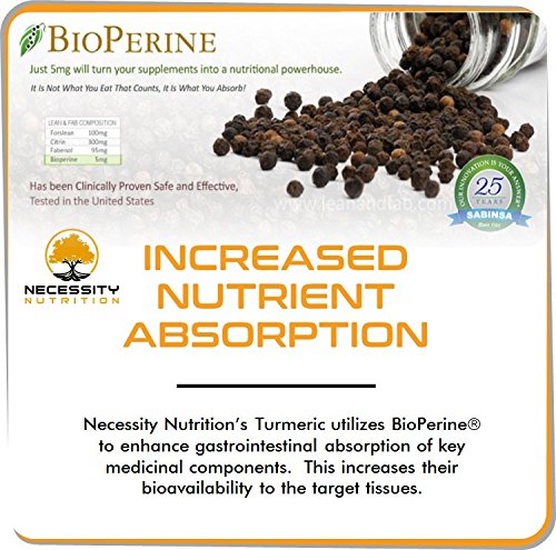 -. Feature : UNCONDITIONAL MONEY BACK GUARANTEE - 100% Money Back. Necessity Nutrition promises to do whatever it takes to ensure you are satisfied. Try our product and if you feel you have not received value for your money we will refund the full P.R.Ice. Customers always come first. Order Now. You have nothing to lose and your health to gain. / POTENT ANTI-INFLAMMATORY PROPERTIES: Turmeric has been scientifically proven to inhibit an array of inflammatory mediators. By disabling these mediators, systemic inflammation is significantly reduced thus providing pain relief in the joints and soft tissues of the body. / SUPPORTS COGNITIVE FUNCTION AND RESTORES BRAIN HEALTH: A study documented in the American Journal of Epidemiology demonstrates how turmeric works to prevent cognitive decline and the associated symp of neurological decline. / UTILIZES THE PATENT TECHNOLOGY OF BIOPERINE: Necessity Nutrition's Organic Turmeric Complex utilizes 15mg of BioPerine per serving to ensure maximum systemic absorption. Without this patented form of piperine, the pepper extract, the medicinal components of the turmeric (curcuminoids), do not make it through the gastrointestinal barrier and, hence, cannot carry out their desired effects on the target tissue. / CURCUMIN - TURMERIC'S BIOACTIVE CURCUMMINOID: Curcumin constitutes about 3.14% of pure powdered turmeric and is believed to have remarkable therapeutic properties. Necessity Nutrition's Organic Turmeric Complex is standardized to contain 95% curcuminoids; making it one of the most potent turmeric complexes available on the market today.