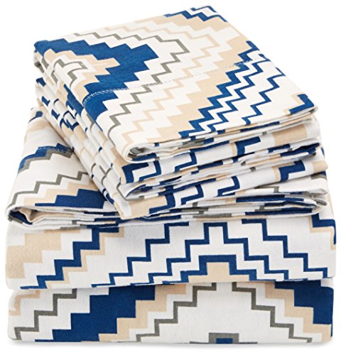 Tribeca Living 200-GSM Chevron Printed Deep Pocket Flannel Sheet Set, California King