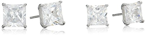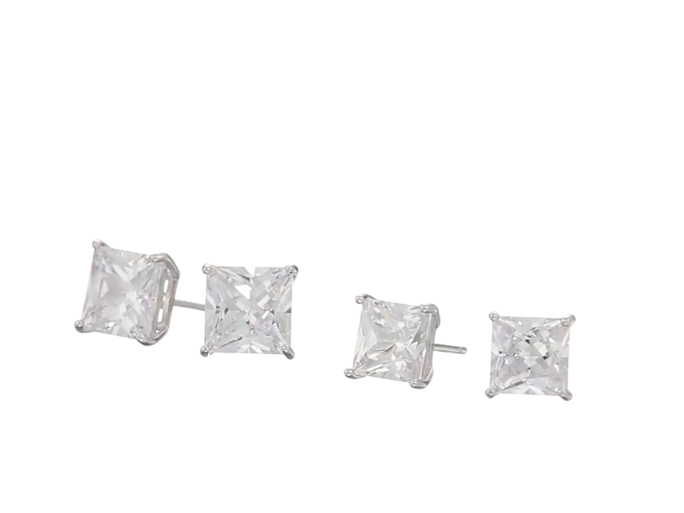 Sterling Silver Cubic Zirconia Square Stud Duo Ear Set Stud Earrings