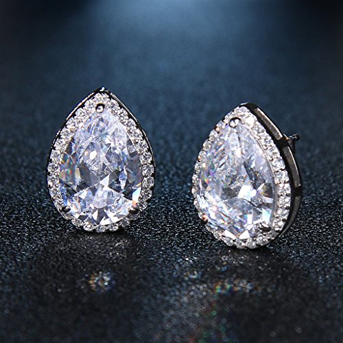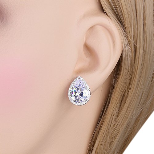 -. Title : EleQueen 925 Sterling Silver Cubic Zirconia Bridal Teardrop Stud Earrings Rhodium Plated