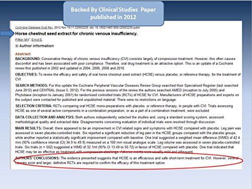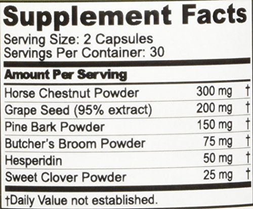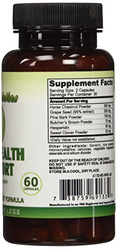 - Feature : BEST TREATMENT FOR VARICOSE VEINS: Varicose Veins Capsules with Horse chestnut extract are the best and the most reliable treatment for spider veins, leg pain, aching, swelling, edema, circulation, and swollen ankles. These help to reduce all kinds of leg pain and also heal venous ulcers and swelling. / 100 % NATURAL INGREDIENTS: The capsules contain natural bioflavonoid blend of ingredients, which help to regulate your circulatory system, particularly, veins and capillaries of your legs. It is 100% pure with no colors, binders, fillers, lubricants, stabilizers, flowing agents, or preservatives. / BACKED BY SCIENCE: The medicinal formula has been developed by physicians after an extensive research and study. The clinical research on the medicine has proved it to be highly effective in patients with varicose veins. / SMALL SIZE CAPSULES EASY TO SWALLOW: The capsules are small in size and easy to swallow. Hence, guaranteed to be gentle on your stomach. For better and quicker results, use the capsules with compression stockings for maximum benefit / 100% SOLAR ENERGY PLANT, GMP CERTIFIED EVERY SINGLE BOTTLE, INGREDIENT FROM USA CERTIFIED FACILITY: The capsules are made with 100% solar energy. The laboratories are using natural means of solar energy and saving our environment by conserving energy. Please note that 100% solar power is used to produce all our vitamin products.
