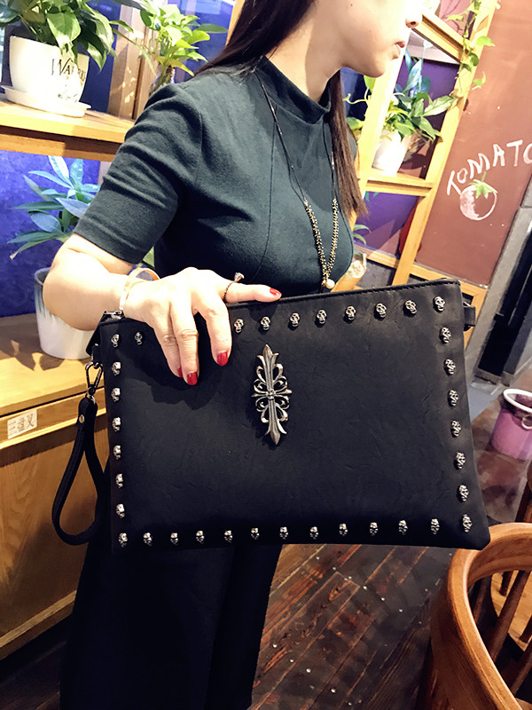 女士铆钉手拿包新款大容量信封包个性手挽包潮女单肩斜跨包包