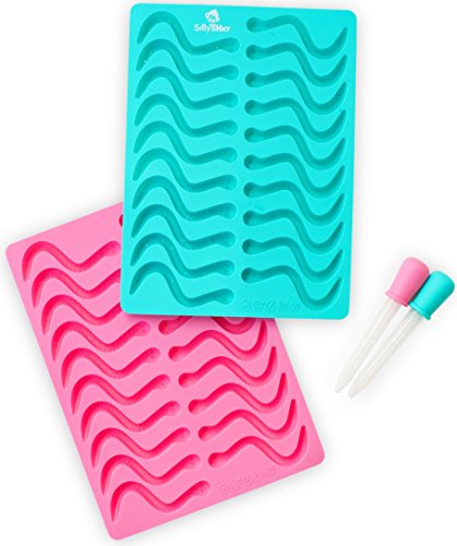Gummy Worm Mold x2 Pack - 20 Cavity Gummy Candy Molds Silicone Mold- Make x40 Worms with x2 Silicone Worm Gummy Molds - Gummies Mold for Gelatin, Hard Candy, Worm Candy. Includes x2 droppers for kids