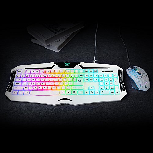 - Feature : Cool rainbow Of LED Backlit Can Be On/Off / Responsive Keys, Compact, Quiet design, And Feel Good / Smooth all-around operation, especially when used with the included mouse. / Mouse added weight in the heel, to improve stability, precision, glide-resistance, etc. / With multimedia keys allow for interference-free gaming, preventing possible accidental keystrokes