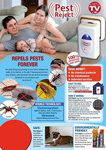 -. Feature : DUAL TECHNOLOGY-Electromagnetic and ultrasound. Uses safe & effective technology to rid those nasty pest from your home. Plugs into any wall power outlet in your house which uses the power in order to effectively eliminate those rodents and pest / SAVE THOUSANDS OF DOLLARS while driving away Rodents without using any kind of poison, risky traps, or chemicals that smell horrible and burns your eyes - Use one unit per floor - has built in night light for indoor use / BEST SOLUTION for Mosquitoes, Rats, Insects and Rodents (Mice, Rats etc..) It will not harm your children, or pets, it is completely safe as long as your pets do not include roaches, rats or any kind of insects / SAFETY-Non-Toxic, chemical-free product,Safe for the whole family. / EASY TO USE-sonic pest repeller,Just plug it in standard US electrical outlet