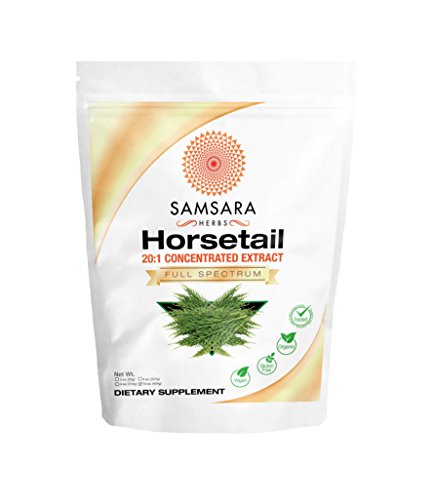 Samsara Herbs Horsetail Extract Powder What is Horsetail Extract Powder? With a history of use dating back to ancient Greece. Horsetail decends from a species of plant that is over 300 million years old! An excellent source of silica. Bone, joint, hair, skin & nail health can all benefit. Arguably the best anti-aging herb for these concerns and MANY more!