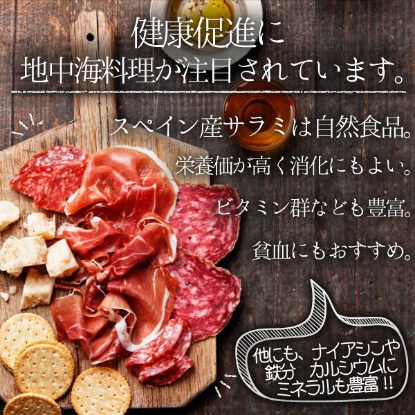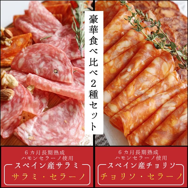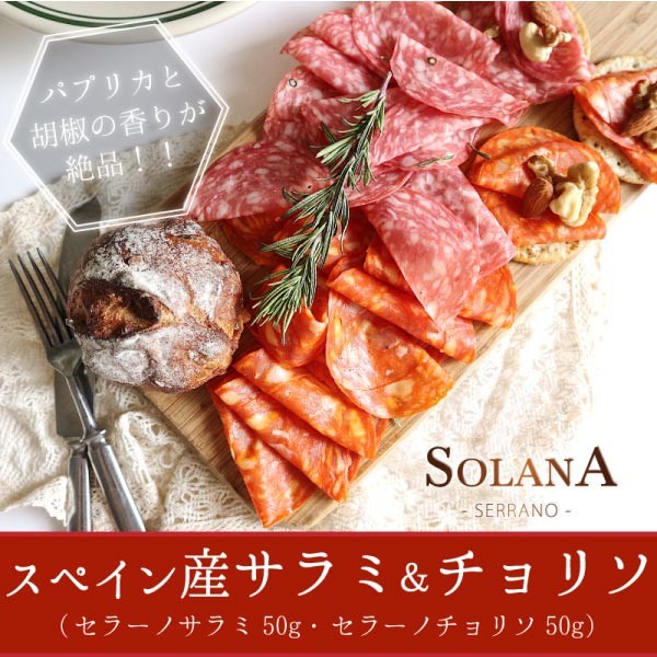 世界三大生ハムの1つとして知られる、スペイン産ハモンセラーノ。この特別な豚肉を使って作られた、サラミとチョリソが味わえるお得なセットです。お肉のうまみが存分に味わえる少し酸味の効いたサラミとチョリソは、お子様のおやつから、晩酌のお供、料理の一品まで何にでも使えます。みんなにたべてほしいから…今だけ22%増量の100gスペシャルパックでお届け中! ポッキリ 送料無料 増量 おすすめ企画【オープン記念大特価】 近年バルやレストランでも人気な生ハムで知られるハモンセラーノパルマハムなどと同じく世界三大生ハムと称され長期熟成が施されたものは特別な逸品として喜ばれてきました。産地: Made in Spain熟成期間: 3ヶ月熟成スペインから直輸入だから出来たこの価格どこにも真似できません!さらに同じ商品を3つ以上同時購入でチョリソのプレゼントも!手土産や特別な日にプレゼントとしてもお勧めです。内容量:100g サラミ50g+チョリソ50g保存方法:常温賞味期限:別途記載原産国:スペイン送料無料:(ポスト投函)
