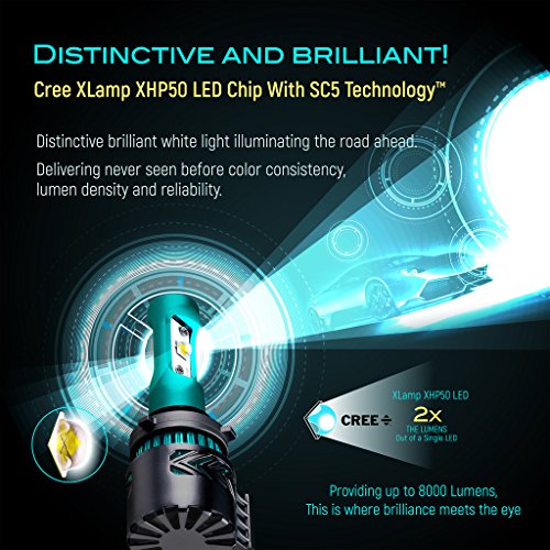 MAXIMUM LIGHT OUTPUT SUPER BRIGHT with the latest and greatest CREE XHP50 LED Chip. This 9006 (HB4) led projector headlight conversion kit offers consistency like never before, with 8000 Lumens, 6000k cool white, well-spread beam pattern, anti-glare body, and no dark spots! Our kit offers an excellent replacement of your vehicles current Xenon, HID, or Projector lamp bulbs