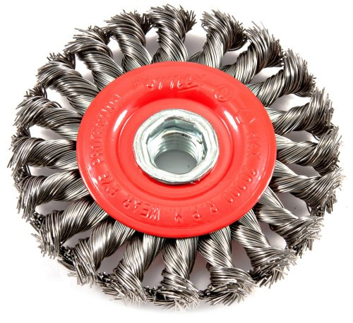 Forney 72759 Wire Wheel Brush, Twist Knot with 5/8-Inch-11 Threaded Arbor, 4-Inch-by-.020-Inch
