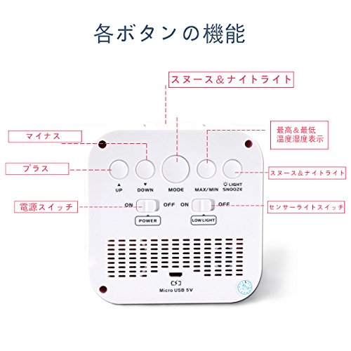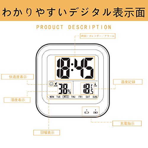 -. Title : 温度湿度計 置き時計 目覚まし時計 最高最低温湿度表示 カレンダー デジタル 温度計 湿度計 USB充電式
