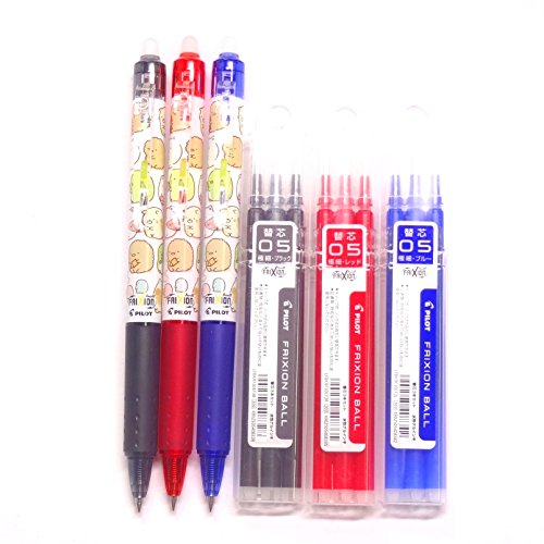-. Title : Pilot Frixion Ball Knock Retractable Erasable Gel Ink Pen, 0.5mm 3 Color Set, Rilakkuma, + Gel Ink Refills (LFBKRF30EF-3B/3R/3L)