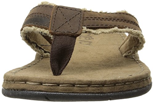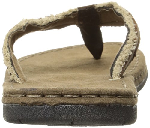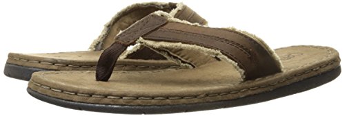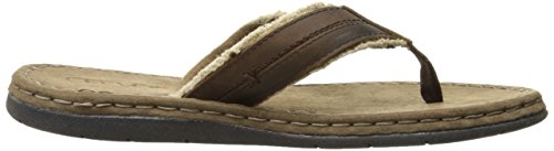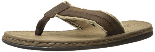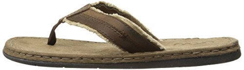 Product DescriptionBurnished leather with frayed canvas thong, comfort rubberlon sock and flexible, rubber outsole.0