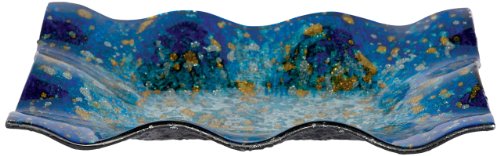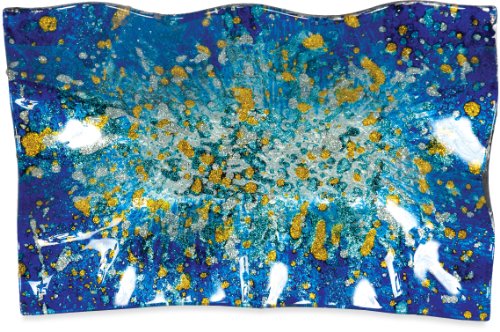 Angelstar 19043 Handmade and Hand-Painted Glass Blue Ocean Rectangular Plate, 10-Inch