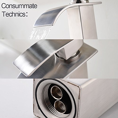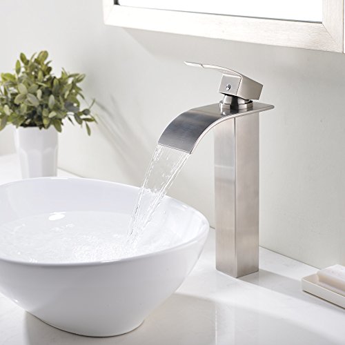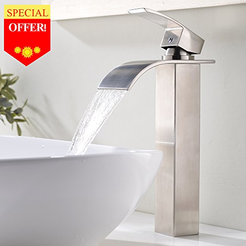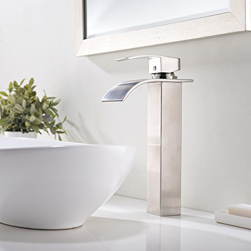 VESLA HOME Contemporary Single Handle Brushed Nickel 12.2 inch Tall Vessel Sink Bathroom Faucet with Large Rectangular Spout