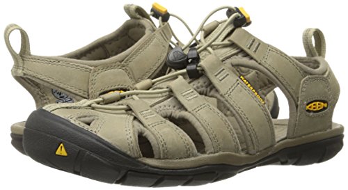 The Clearwater Leather can do it all. Lightweight and low profile this sandal looks great with shorts, capris or a skirt without sacrificing fit or performance. Signature KEEN toe protection, contoured arch support, and bungee lacing provide customized fit while the waterproof leather upper, multi-directional flex grooves and razor siping provide advanced traction on slick surfaces.