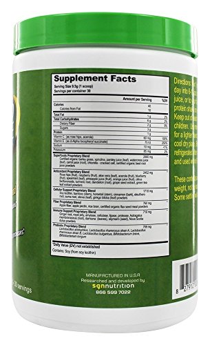 SUPERFOODS: Packed with 42 superfoods, probiotics, vitamins, and minerals; Contains the antioxidant power of 8-10 servings of fruits and vegetablesFree of any wheat, beans, yeast, spinach, nuts, sugar, fructose or dairy products