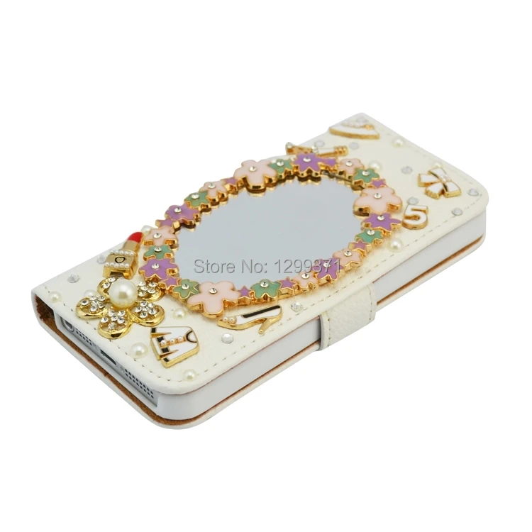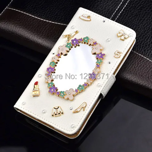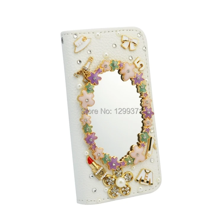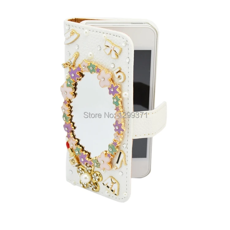 Features:Fashion Flip Wallet Stand Bowknot Flower Mirror Diamond Leather
