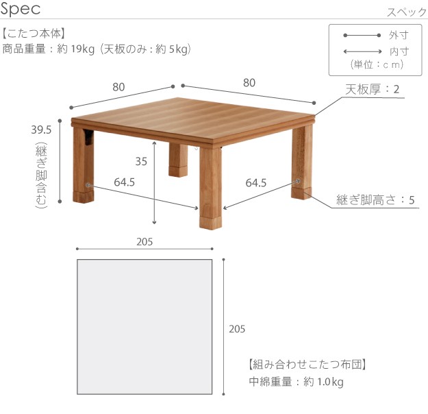 ●天板サイズ:幅80x奥行80cm・厚み20mm・約5kg