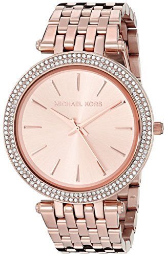 -. Binding : Watch -. Brand : Michael Kors -. ClothingSize : One Size -. Color : Rose Gold -. Department : womens -. EAN : 0691464950255 -. Feature : Rose gold-tone stainless steel bracelet watch with glitz bezel featuring tonal dial and stick hour markers / 39 mm stainless steel case with mineral dial window / Quartz movement with analog display / Stainless steel band with fold-over clasp with double push-button safety closure / Water resistant to 50 m (165 ft): In general, suitable for short periods of recreational swimming, but not diving or snorkeling -. IsAdultProduct : 0 -. Label : Michael Kors Watches MFG Code -. Manufacturer : Michael Kors Watches MFG Code -. Model : MK3192 -. MPN : MK3192 -. NumberOfItems : 1 -. PackageQuantity : 1 -. PartNumber : MK3192 -. ProductGroup : Watch -. ProductTypeName : WATCH -. Publisher : Michael Kors Watches MFG Code -. ReleaseDate : 2012-04-23 -. Size : One Size -. Studio : Michael Kors Watches MFG Code -. Title : Michael Kors Women's Darci Rose Gold-Tone Watch MK3192 -. UPC : 691464950255 Crystals cover the bezel of this glamorous Michael Kors watch, designed with slim markers on the brushed dial. Hinged-snap clasp.
