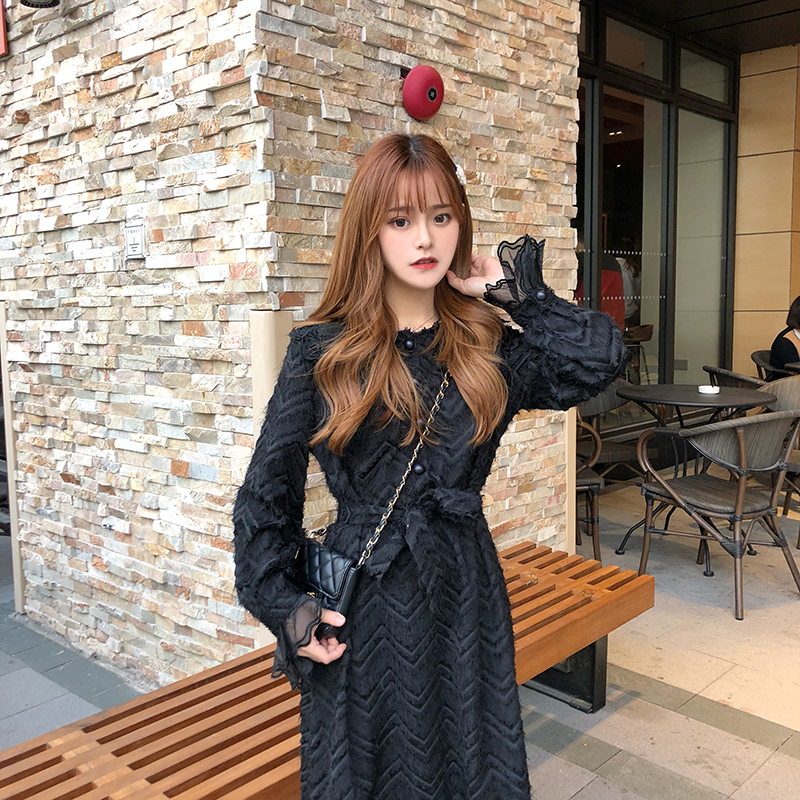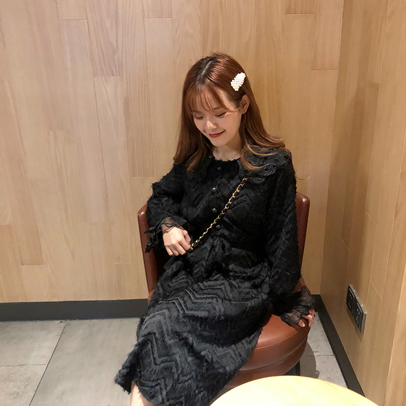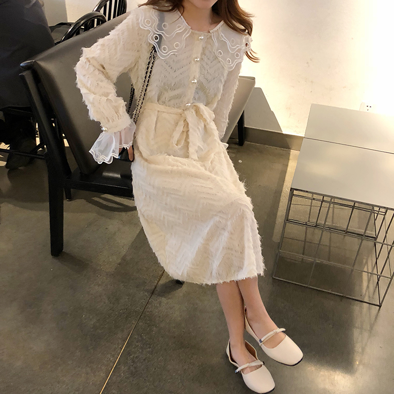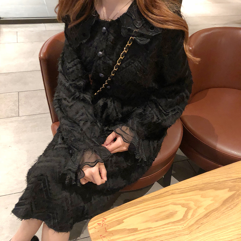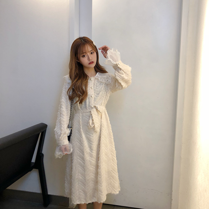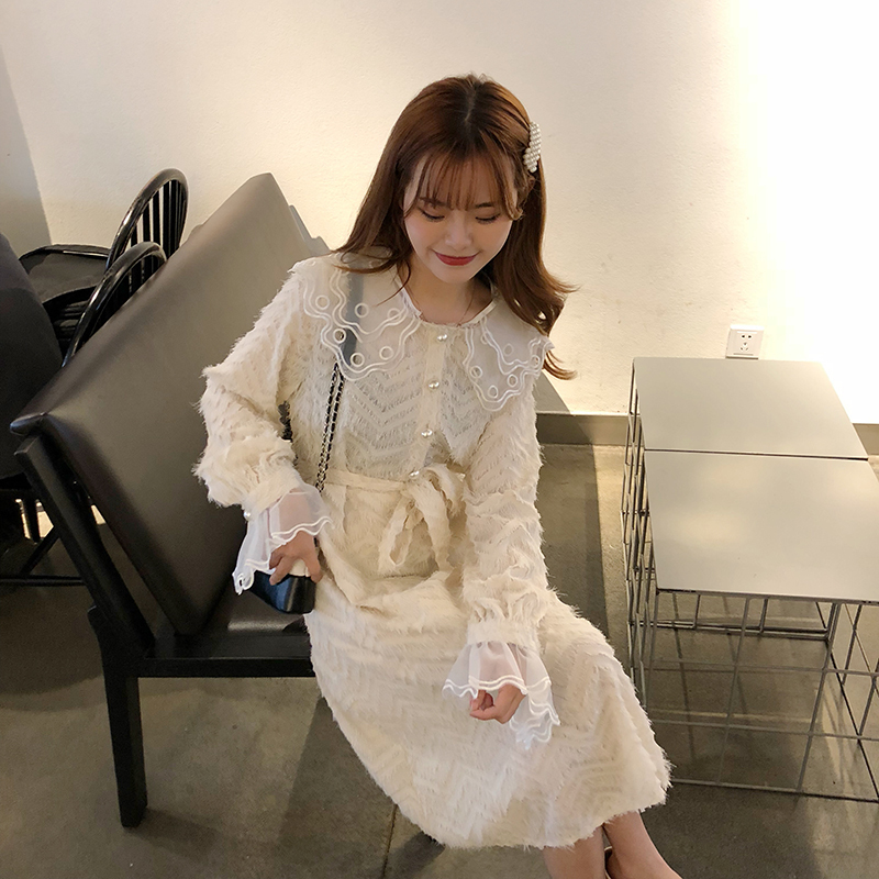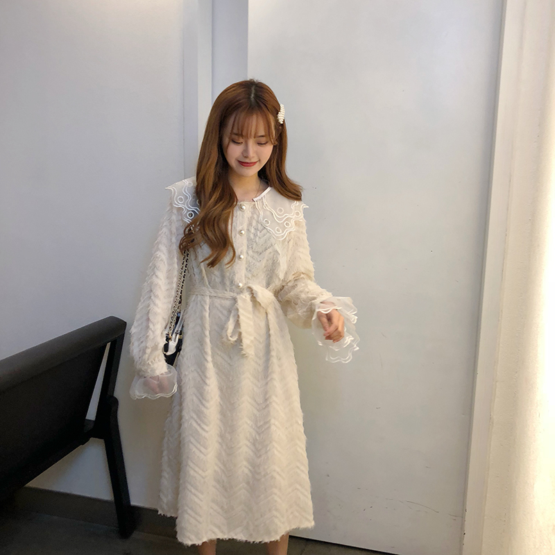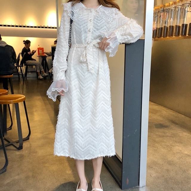 袖口と襟元には大きめチュールレースをあしらい、1枚でも華やかさバツグンに仕上がったオススメワンピです。