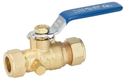 Homewerks 119-1-12-12 No-Lead Full Port Ball Valve with Drain with 1/4-Turn Compression x Compression, Brass, 1/2-Inch