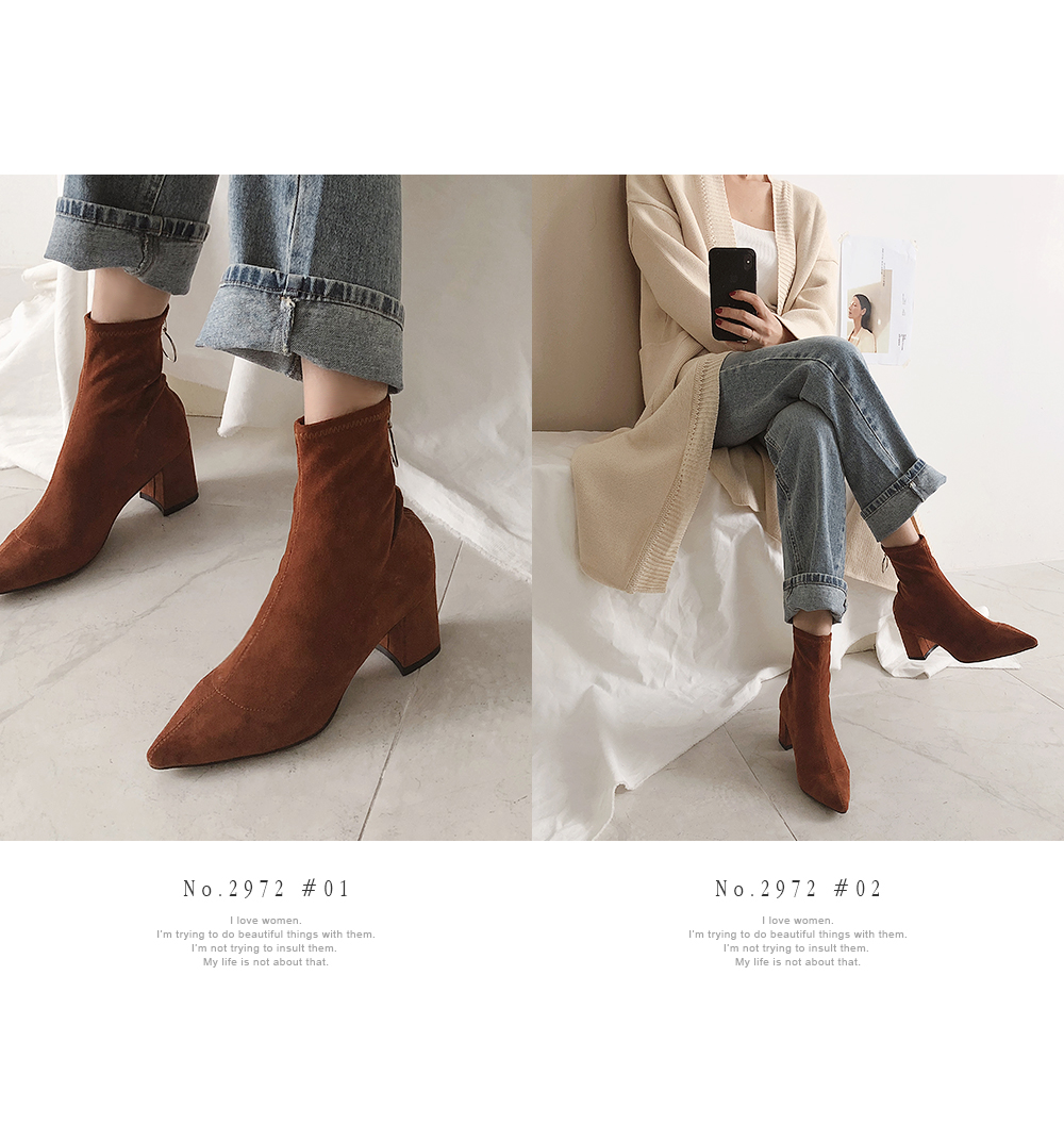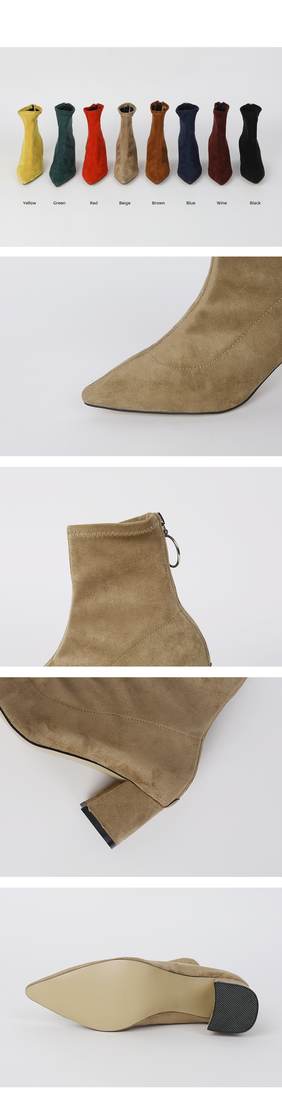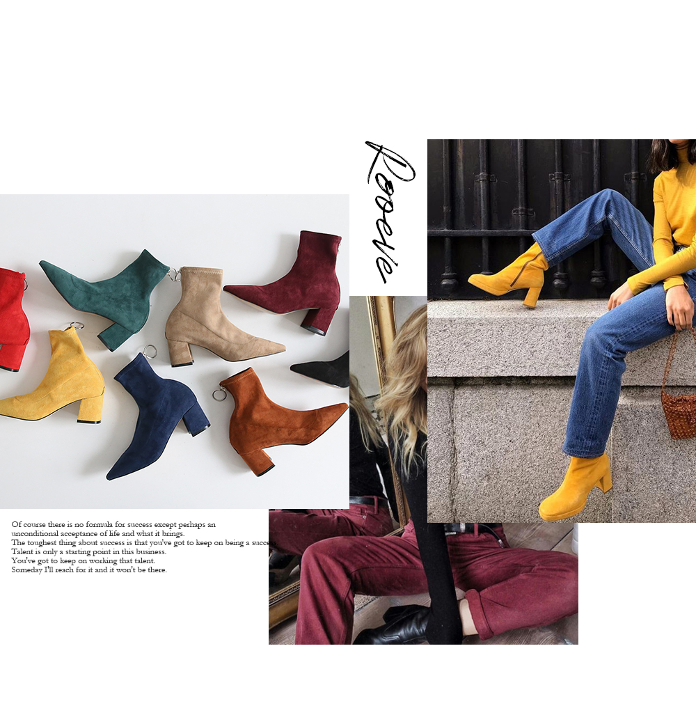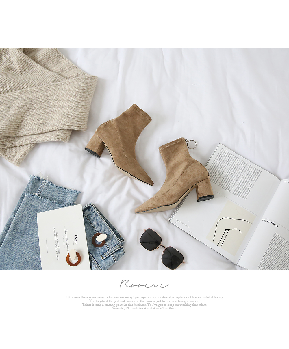 볼드한 굽과 텐션감있는 스웨이드 소재로 양말을 신은듯