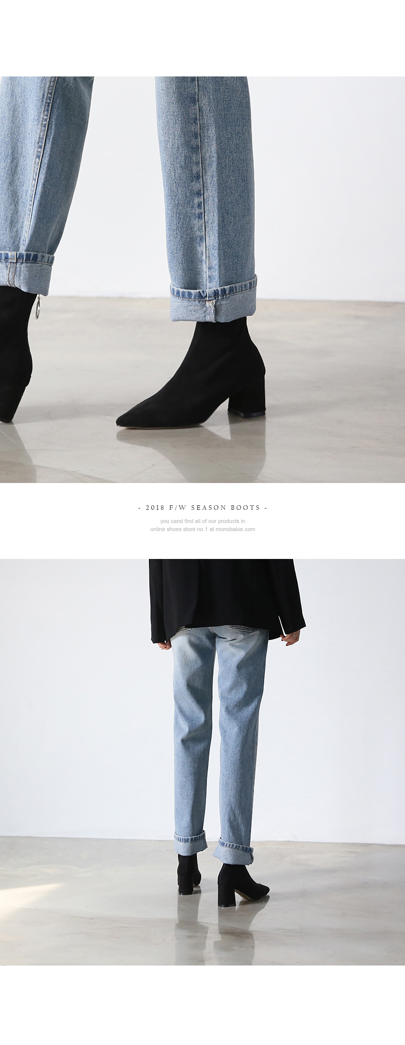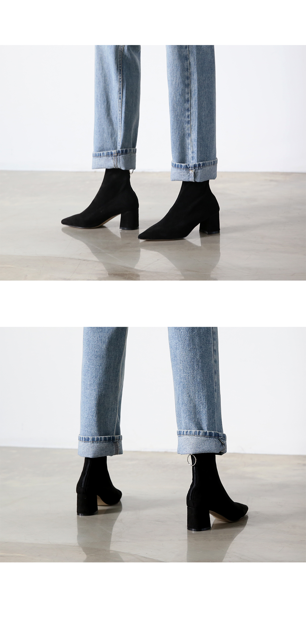 앵클라인에 타이트하게 핏되는 앵클부츠입니다.