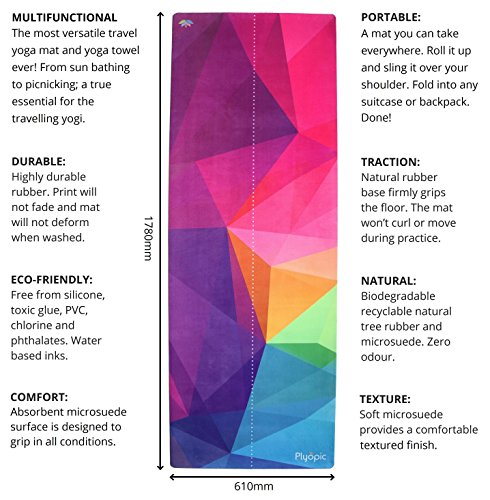 Accessories Included: Cotton yoga/carrying strap Washing Instructions: Machine wash alone at low temperature on delicate cycle with a mild detergent. Hang dry. Product Dimensions: 1780 x 610 x 1.5mm Product Weight: 1kg A perfect gift for any Yogi, Pilates Practitioner or Fitness Enthusiast. Just click "Add to Basket" at the top of the page to have your very own Plyopic Travel Mat rushed straight to your door. 0
