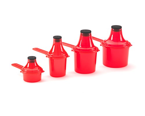 Scoopie Quad Pack Count | Portable Scoop and Funnel Travel Container | Pre and Post Workout Pack | On The Go Powder Dispenser For Water Bottles and Shaker Bottles (15cc/30cc/60cc/90cc, Red)