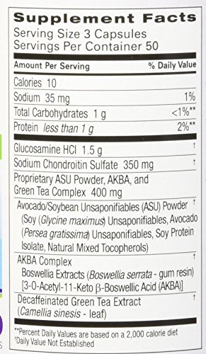 Fast acting and advanced, Cosamin ASU has a combination of ingredients that work faster than glucosamine alone. Glucosamine HCI, Chondroitin sulfate and avocado/soybean unsaponifiables along with decaffeinated green tea extract work together to decrease the markers associated with cartilage breakdown and joint discomfort. These ingredients promote positive responses associated with cartilage protection and joint comfort.Feature