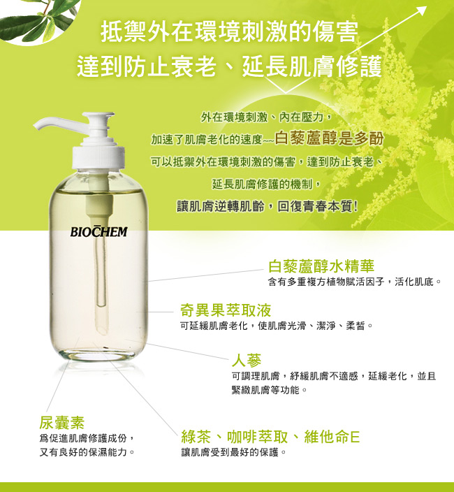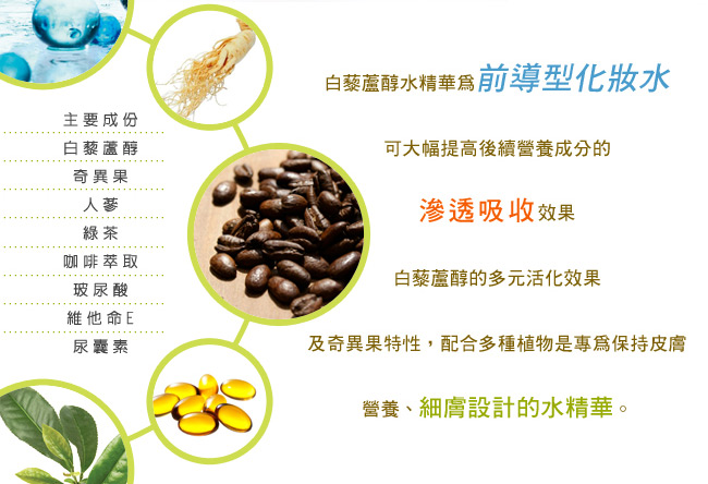 Advanced functional lotion with extracts from Resveratrol on red grapes, Resveratrol Moisture Lotion has anti-aging elements and diversified effects of activation, significantly increasing the absorption of subsequent nutritious components.