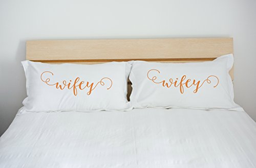 One Bella Casa Wifey and Wifey Set of 2 Pillowcases by OBC, Standard 20"x 30", Orange