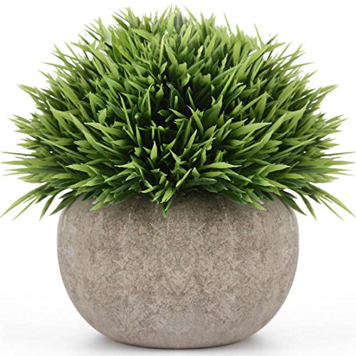 Kumii Mini Artificial Topiary Plants in Pot Small Home Decor, Fake Plant for Kitchen Office Desk Decoration (Green Grass)